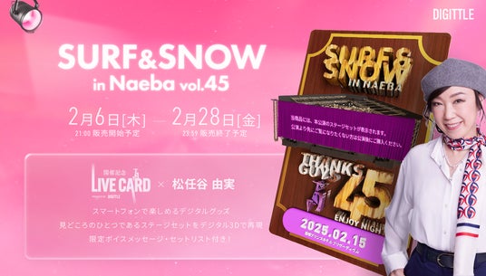 株式会社Digittle(本社:東京都渋谷区、代表取締役:韮澤 真人、以下当社)は、2025年2月6日(木)より開催される松任谷由実さんのコンサート「SURF&SNOW in Naeba Vol.45」にて、コンサートへの参加記念商品として、LIVE CARDの販売を行います。