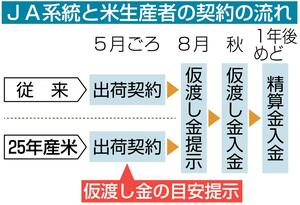 2025年産の主要銘柄を対象に試行する。仮渡し金は出荷時に支払われる前金で、取引価格のベースとなる。...