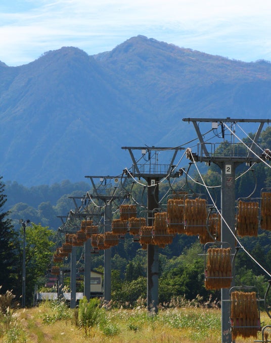 星空米は米どころ新潟で“幻の米”と呼ばれる両善寺米を、さらにスキー場リフトで はさ掛け* することでより美味しさを引き出しております。