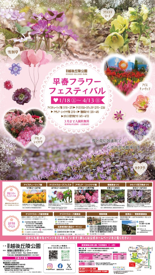 国営越後丘陵公園(新潟県長岡市)では、2月15日(土)~2月24日(月休)に早春フラワーフェスティバル第2弾「クリスマスローズフェスタ」を開催します。