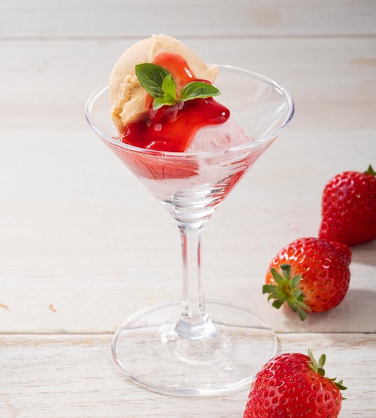 いちごアイス、紅茶アイスに果実入りいちごソースを添えました。食後に少しだけ甘いものを楽しみたい時にぴったりなミニデザートです。