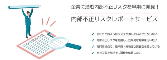 「内部不正リスクレポート」は、そんな企業のお悩みを解決できるサービスです。