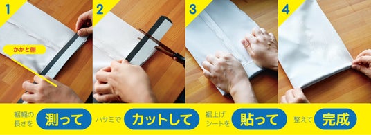 ネットや店頭で購入したパンツを切ることなく、裾幅に合わせたシートを張り付けるだけで裾上げ、長さ調整が自宅で5分でできる「くるりん裾上げシート」。