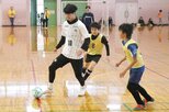 参加者はドリブルやフェイントなどの注意点やこつを教わった後、コーチ陣と対戦。学んだことを試しながら果敢にゴールを狙った。先制点を奪った糸魚川中学校2年の男子生徒(14)は「ボールを回す位置が勉強になった。点を決められてうれしい」と笑顔で話した。
