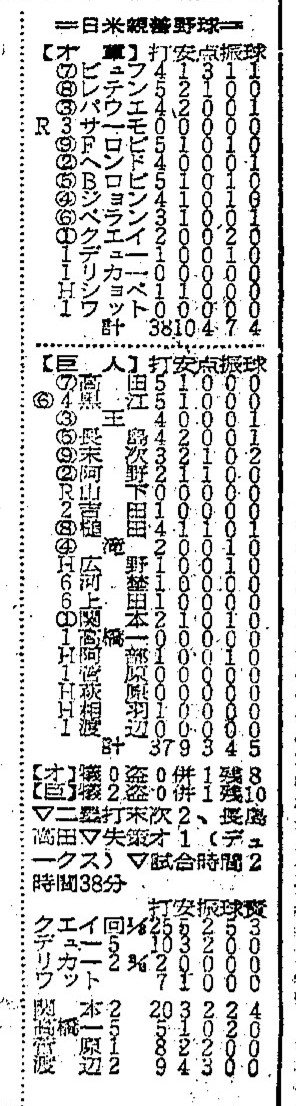 「関本、五回ダウン」と見出しにはついているが、五回に3ランを打たれるまでは1失点のみでこらえ、試合をつくったとも言える。「オ軍、気迫で圧倒」の記事を見てみよう。