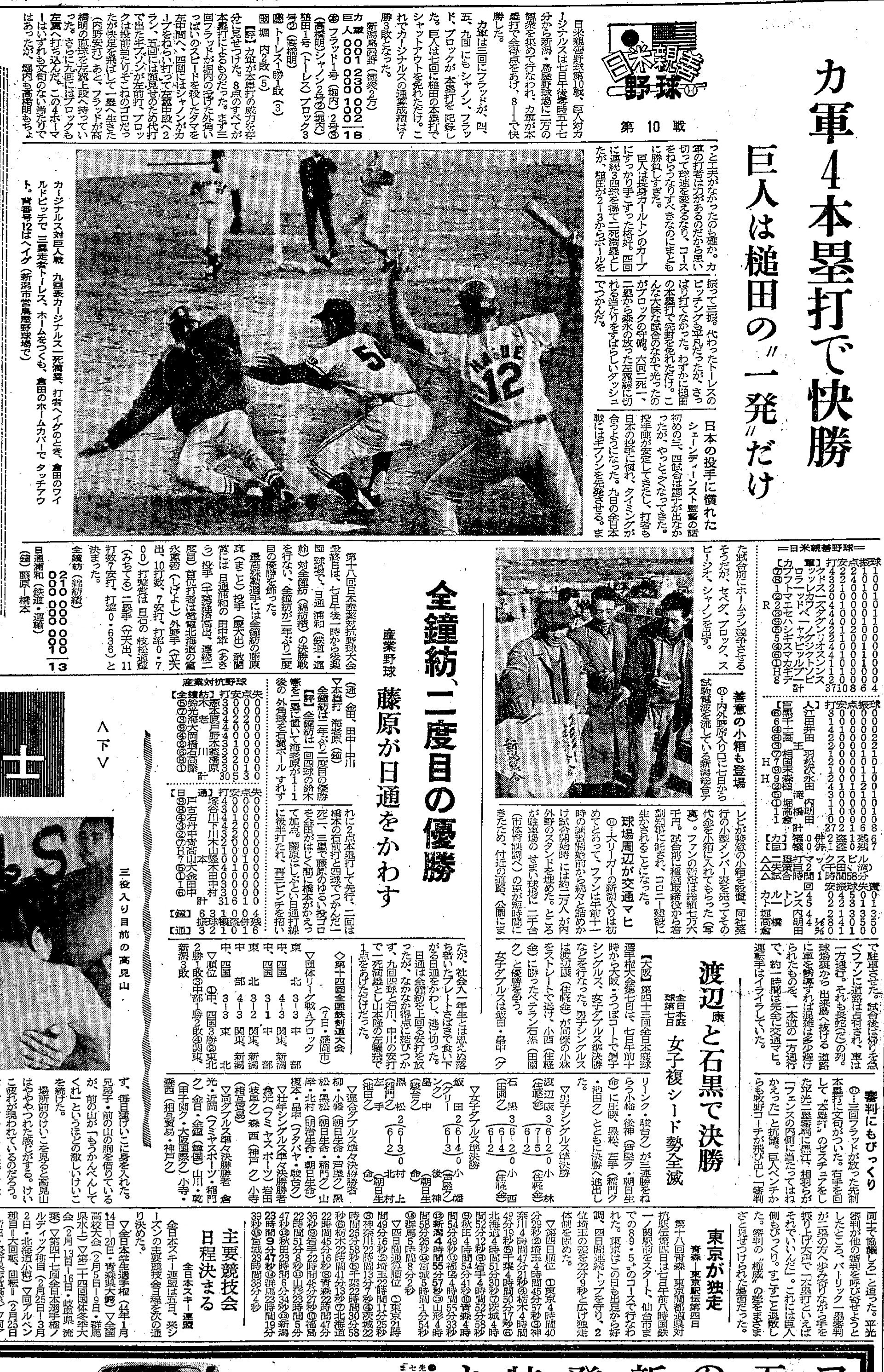 川上哲治監督が「王(貞治)はスランプ」と言った年だが、39本塁打、101打点の2冠でそう言われるのは逆に偉大なのかもしれない。確かに打率は2割7分6厘と伸びなかった。記事でも巨人は「低迷」と書かれ、後半戦の失速を指摘されているが、しっかり優勝しているのだから、当時の巨人への期待の高さもあるのだろうか。