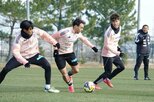 鹿島戦に向け、調整するアルビレックス新潟の選手=2月25日、大阪府