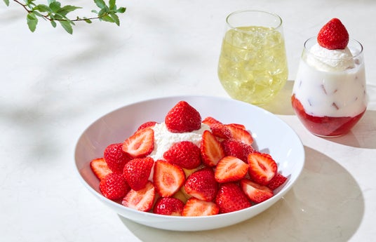 “ペアリングドリンク“いちごグリーンティ(ICE/HOT)新潟県村上市の村上煎茶を使用。