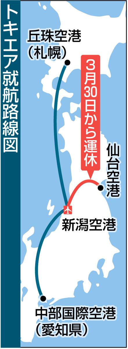 仙台市に営業拠点がある新潟市中央区の建設会社は頻繁に仙台への出張があるという。だが、広報担当者は「仙台は車でも3時間半で着く。仙台で営業先を回るために車が必要で空路では不便。出張でトキエアは選択肢になかった」と話す。