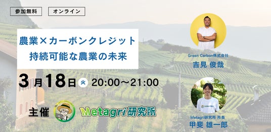 農業web3コミュニティ「Metagri研究所」(運営:株式会社農情人、本社:千葉県船橋市、代表取締役:甲斐雄一郎)は、2025年3月18日(火)に、「農業×カーボンクレジットが創る持続可能な未来」と題したオンラインセミナーを開催いたします。