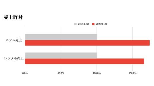 インバウンド観光客の増加に伴い、 ホテル売上は昨対比173.8%と大幅な成長を遂げました。特に台湾やオーストラリアからの長期滞在者が増加し、以下の要因が売上増加を後押ししました。