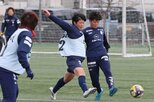 リーグ戦再開へ向け、調整する主将のMF川澄奈穂美(左)=聖籠町