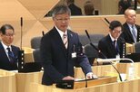 県知事杯争奪軟式野球大会2位に輝いた柏崎信用金庫野球部の佐藤尚孝さん(39)=刈羽村赤田=が、受賞者を代表してあいさつ。式後、「今回の成績で刈羽村民に信金の名前を知ってもらえたと思う。今年も精進したい」と話した。