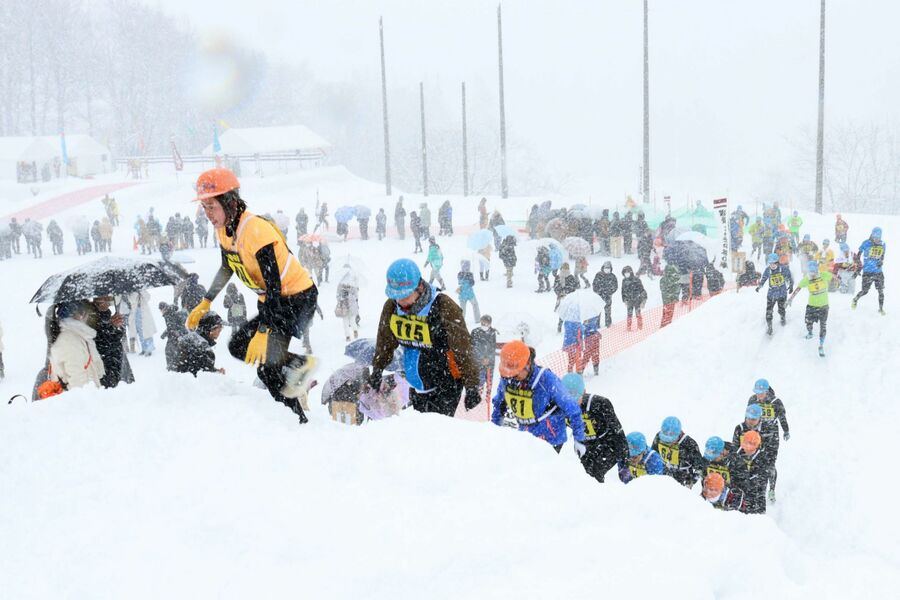 [2024年の様子]一番乗りじゃ!雪に負けず松代城奪還!新潟十日町市で名物鉄人レース、城主の座かけ県内外から参加