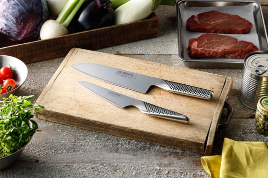 テーブルナイフで培った製造ノウハウを包丁に応用させるという発想から、刀身から柄までオールステンレス一体構造包丁の「GLOBAL」シリーズを1983年に発表。このかつてないコンセプトは、世界の包丁業界に新しく“オールステンレス包丁”というジャンルを形成するまでの衝撃を与えました。「GLOBAL」シリーズは発売から40年を越えた今日でも、色褪せることなく世界中のシェフやユーザーから高い評価と支持を受け続けています。