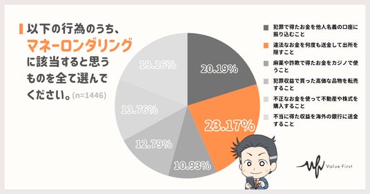 デジタルマーケティングの株式会社バリューファースト(本社:神奈川県横浜市、代表取締役:佐野 聡士、以下バリューファースト)が運営する「ゼニエモン」では10代以上の男女400名を対象に、マネーロンダリングの認識度についてアンケートを実施しました。