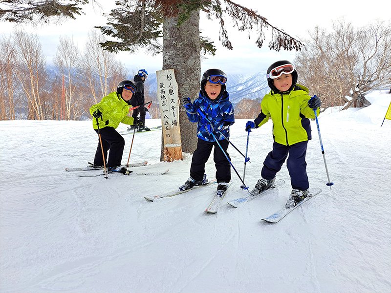 冬は家族でウィンタースポーツを楽しむ飯塚さん一家。写真は杉ノ原スキー場(妙高市)でスキーを楽しむ様子
