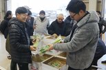 特別給食では、前日に収穫したばかりの女池菜を使ったみそ汁が全校児...
