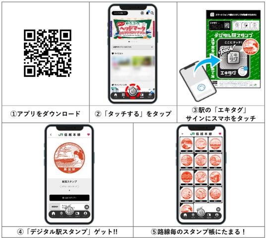 「エキタグ」アプリをダウンロードし、駅に設置された「NFCタグ」にスマートフォンをタッチすると、路線毎のスタンプ帳にスタンプが押印されます。