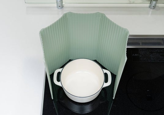 ストレスなく扱いやすい樹脂製を採用した『すっきり暮らす油はねガード』