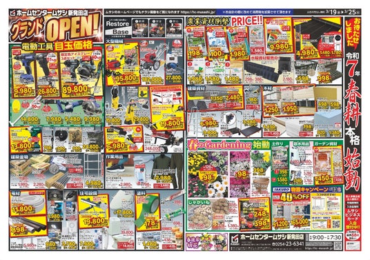 当該店舗は、2018年の開店以来、約7年間にわたり地域の皆さまにご愛顧いただいた「住DEPOT新発田店」を一新し、「ホームセンタームサシ新発田店」としてグランドオープンいたします。
