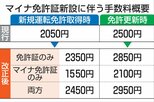 今回の運用開始により、免許証の保有形態は(1)マイナ免許証のみ(2)マイナ免許証と従来の免許証の2枚(3)従来の免許証のみ-の3パターンから選べる。マイナ免許証だけを持つ場合、住所や氏名の変更は自治体に届け出るだけで済み、新規取得や更新費用は従来の免許証に比べて750〜800円ほど安くなる。