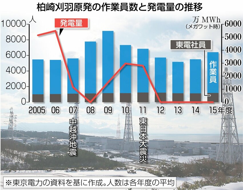 東京電力柏崎刈羽原発の停止による新潟県柏崎市の経済的損失は「約3400億円」とする試算がある。