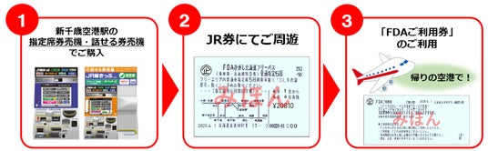 JR北海道では、株式会社フジドリームエアラインズ(FDA)とのタイアップ商品「FDAひがし北海道フリーパス」「FDAきた北海道フリーパス」について、ご好評につき2025年度も継続して販売します。たくさんの魅力がつまった道東および道北をJR線で隈なく周遊観光できるフリーパス(JR券)と、新千歳空港4F「アミュージアムショップフライヤーズ」でFDAグッズをご購入の際にご利用いただける1,000円分のお買物券(FDAご利用券)がセットになった大変おトクなきっぷです。