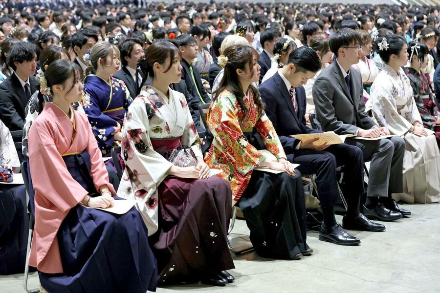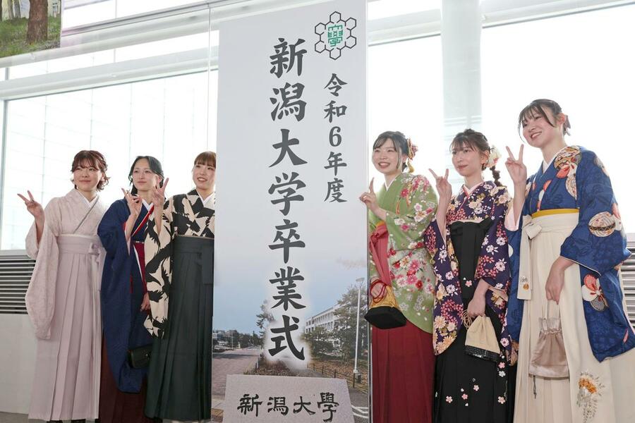 2024年度の新潟大の卒業式が3月24日、新潟市中央区の朱鷺メッセで行われた。新型コロナウイルス禍のさまざまな制約や能登半島地震を乗り越え、勉学やスポーツなどに励んできた学部生、大学院生ら計3018人が、人生の新たな一歩を踏み出した。