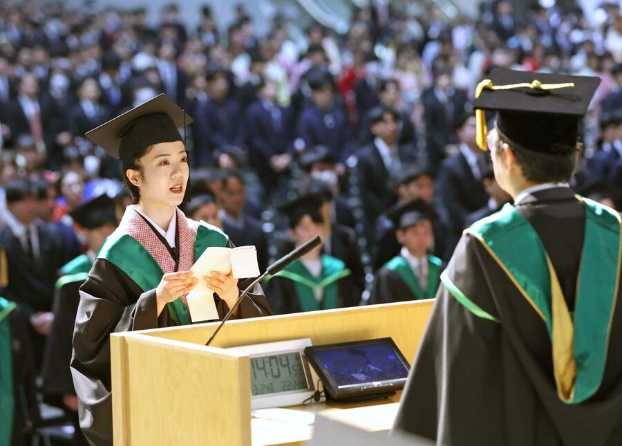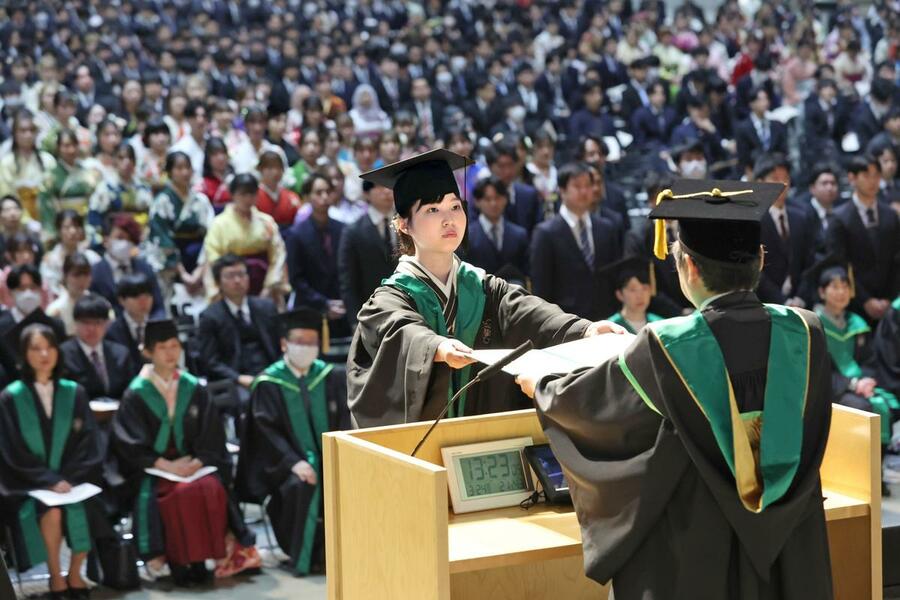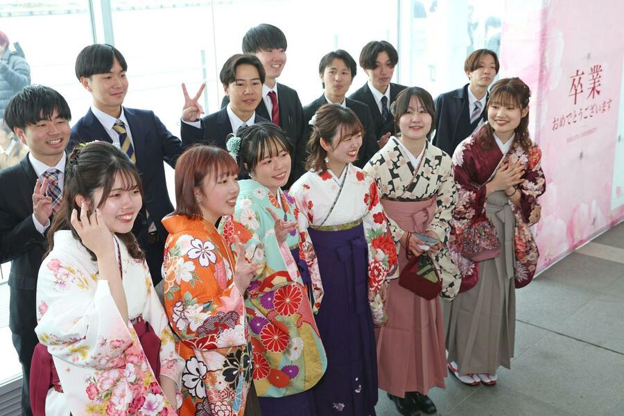 卒業式で牛木辰男学長は「皆さんは厳しい期間を乗り越えてきた。学び続け、自分の夢や目標に向かって進んでほしい」と激励。卒業生を代表し、高校の英語教員になる人文学部の女性(23)は「子どもたちの個性や価値観を尊重し、子どもの可能性を最大限に引き出せるよう...