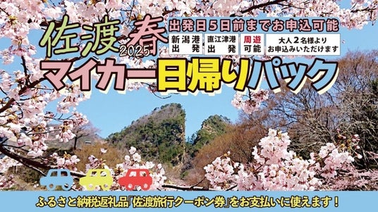 佐渡汽船株式会社(所在地:新潟県佐渡市、代表取締役: 尾渡英生、以下「佐渡汽船」)は、車両航送に特化した日帰り旅行商品「佐渡マイカー日帰りパック」を、2025年3月26日(水)より発売開始しました。