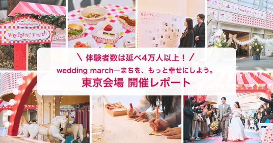株式会社ウエディングパーク(本社:東京都港区、代表取締役社長:日紫喜 誠吾)は、2025年3月20日(木・祝)~23日(日)に誰でも参加できる「結婚式」をテーマにしたイベント「wedding march - まちを、もっと幸せにしよう。(以下、wedding march)」を東京・奈良・新潟で同時開催し、4日間、3拠点での体験者数は延べ4万人を超えました。
