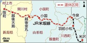 2022年の県北豪雨で被災したJR米坂線の復旧について、JR東日本と沿線自治体が協議する「復旧検討会議」の第5回会合が26日、関川村で開かれた。JRは第三セクターによる運営やバスに転換した場合の地域の費用負担について目安を提示。新潟県側に当たる坂町(村上市)-小国(山形)で、三セクの場合は年間2億4千万〜7億2千万円、バスの場合は年間7千万〜9千万円になるとした。