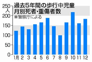 社会 登下校の不慣れ背景?歩行中の交通事故死傷者、7歳が最多…登下校の安全確認を・警察庁2020~24年まとめ 2025/4/6 11:00 2020〜24年の過去5年間に全国で発生した歩行中の交通事故の死傷者数(軽傷を含む)は、全年齢のうち7歳が3436人で最多だったことが分かった。4月6日から始まる春の全国交通安全運動を前に警察庁が明ら... 残り774文字(全文:875文字) ここから先を読むには 続きを読む(会員登録する) 続きを読む(ログイン) 新潟日報朝刊を購読していますか? はい いいえ トップページで最新情報を見る 関連ニュース 「ながら運転」死亡・重傷164件で2年連続最悪、新潟県内の事... 2/28 2024年全国交通事故死者数、15人減の2663人 過去3番... 1/8 若者の視点でビジネス提案!佐渡総合高校2年生が課題解決型イン... 15:30 お世話した2頭とお別れ…山古志のアルパカ元気でね!見附市・葛... 15:00 [鉄道運行情報]JR上越線・水上ー越後中里の上下線で運転見合... 12:45 [熊目撃情報]魚沼市(12月17日) 11:20 高温・乾燥に強いコメ開発へ…新潟大学が2026年度新施設整備... 10:30 クラレ(東京)が障害がある社員の作業所を胎内市の事務所敷地に... 9:00 県民の暮らし守るため全力! 新潟市中央区で新潟県警の永年勤続... 8:00 「急」はダメ!ふんわり運転をしよう♪新潟江南署が交通事故防止... 6:00 長岡市の横断歩道で60代男性が軽乗用車にはねられ重体、運転し... 12/16 燕市の地下水から基準値超の鉛…周辺井戸では「検出されず」 新... 12/16