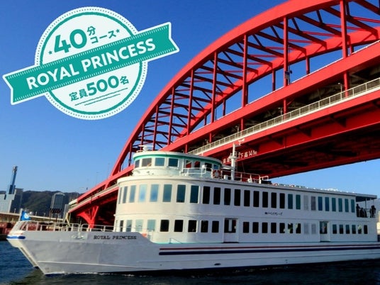 関西最大級の大きさを誇る遊覧船「ロイヤルプリンセス」。中央に2階席へとつづく豪華な階段と広々とした客室が特徴です。2020年3月に新設された3階のスカイデッキから潜水艦や大型船の建造風景や六甲山を背景とした神戸の街並みを360°の景色で見渡す事ができます。神戸空港を発着する飛行機も見ることができるかも。