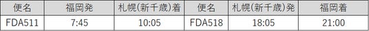 株式会社フジドリームエアラインズ(略称:FDA、本社:静岡県静岡市、代表取締役社長:楠瀬 俊一)は、本日3月30日(日)より、新たに『札幌(新千歳)=新潟』『福岡=札幌(新千歳)』線の運航を開始しました。 新千歳空港、新潟空港および福岡空港では、就航記念式典を開催し、本日同路線にご搭乗いただいたお客さまに記念品を配布しました。この就航により北海道を発着する路線が拡大し、FDAネットワークの利便性が高まります。