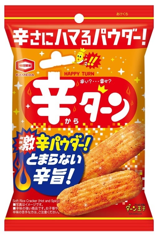 亀田製菓株式会社 (本社:新潟県新潟市、代表取締役社長 COO:高木 政紀)は、『ハッピーターン 辛ターン』(以下:『辛ターン』)を、3月31日(月)より期間限定で全国のスーパーマーケットとコンビニエンスストアにて発売中です。甘じょっぱい「ハッピーパウダー」が人気の『ハッピーターン』が「辛パウダー」をまとった、辛いのに旨くて手がとまらない新感覚のおいしさです。