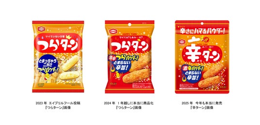 2023年のエイプリルフールに、ハッピーターン【公式】Xアカウント(@happyturnkameda)から投稿した「つらターン」の大きな反響を受けて、昨年2024年のエイプリルフールには、「嘘から出たまこと」として『つらターン』が1年越しに商品化されました。Xでは、「これはエイプリルフール?ガチ?」「ネタかと思ってたらほんとに売ってた」等多くの反応をいただき、1.3万リポスト、4万いいねを獲得する等大きな話題を生み出しました。
