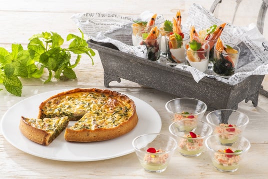 ・ヤスダヨーグルトとアボカドムース 紅ずわい蟹添え ・春のキッシュロレーヌ 和風ヤスダヨーグルト風味 ・サラダ海老と彩り野菜のヤスダヨーグルトソース
