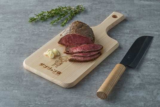 カッティングボードに『ダンジョン飯』ロゴとミスルンを刻印いたしました。
