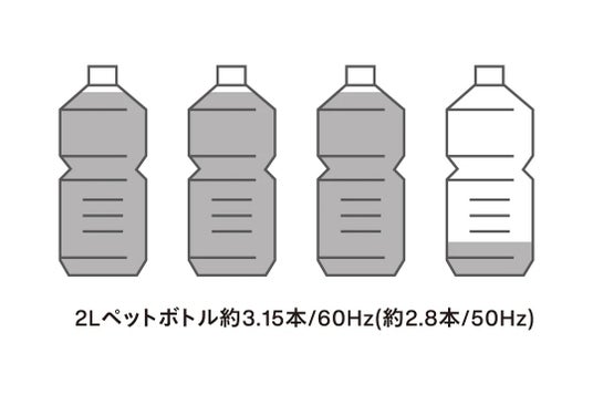 ※2 室温27℃相対湿度60%で運転(60Hz)したときの1日あたりの除湿量。50Hzの場合は5.6L。水タンクが満水になると運転を停止します。