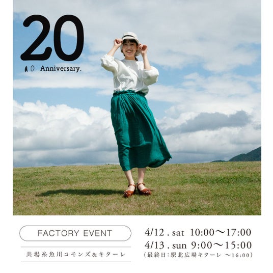 20周年を記念して、イラストレーター塩川いづみさんとのコラボTシャツの発売や、ブランドゆかりの地である代官山、糸魚川などでの記念イベントの開催など、特別な企画を多数ご用意いたしました。