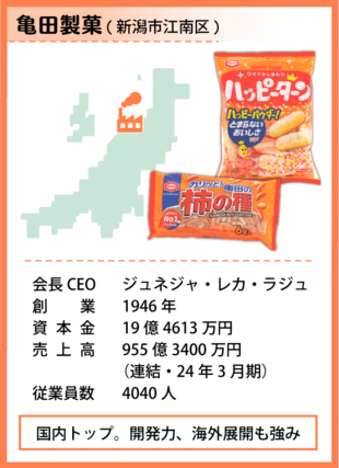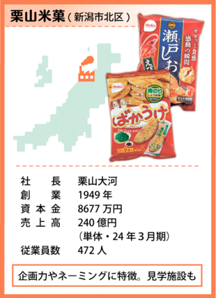 経済や暮らしを支えている新潟県内企業を業界ごとに紹介するシリーズ「にいがた業界地図」を始めます。県内にある多様な業界の中から毎月一つの業界にスポットを当て、主要企業のデータを紹介するほか、各社が磨いてきた技術や戦略、若手社員の活躍などを取り上げます。4月は米菓業界に迫ります。※上の図表は県米菓工業協同組合の加盟社。代表取締役呼称は省略。従業員数は2024年4月1日現在。