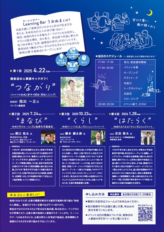 こうした状況を踏まえ、南魚沼に根ざす人材に向けて、民間主導で実践的な学びや多様な交流の機会を提供する「南魚沼の人事部」を新たに立ち上げました。
