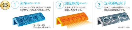 「アクアドロップ洗浄」で熱交換器をすっきり水洗い。