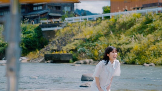 青空の下、爽やかな笑顔で現場に入られた福本さん。ドローンを駆使した撮影もポイントとなる中、撮影前には監督と何度も打ち合わせを重ね、的確に対応する姿が印象的でした。川のシーンでは、強い日差しの中、何度も川に入りながら叫ぶというハードな撮影にもかかわらず、疲れを一切感じさせない姿を見せ、プロフェッショナルな一面を発揮。撮影の合間には、頭に保冷剤を乗せて涼むキュートな姿も見られました。そして撮影のラスト、監督の「OK!」の声がかかると、福本さんは輝くような笑顔を見せ、現場は終始和やかな雰囲気に包まれながら無事に撮影を終えました。