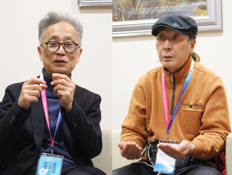 新潟県十日町市に本社を置くアニメーション制作会社「紺吉(こんよし)」(瀧澤大祐代表取締役)が、十日町市の誇る国宝「火焰(かえん)型土器」がスーパーロボットとなって戦う長編アニメーション「烈火」の制作に取り組んでいます。紺吉の映像創作顧問は、「超時空要塞マクロス」などで知られる日本を代表するアニメーターの板野一郎さん。「ウルトラマンダイナ」など平成ウルトラマンシリーズを手がけた映画監督の小中和哉さんが総監督を務め、2028年の公開を目指し現在、制作が続いています。アニメ・特撮のレジェンドがタッグを組み、新潟を舞台にどんな作品を生み出すのか、「新潟国際アニメーション映画祭」に合わせて新潟市を訪れた板野さんと小中さんに直接お聞きしました!
