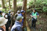 雨が降る中、参加者は同市猿八の登山口をスタート。経塚山の中腹まで登った後は、雪解け水が豪快に流れ落ちる「夕栗の滝」を巡るなど、約2時間半のトレッキングを楽しんだ。