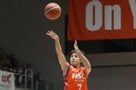 第3クオーターでも引き離され、43-67の24点差。最終クオーター、途中出場の大矢孝太朗と池田雄一が3点シュートを決めて...