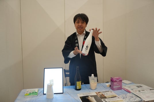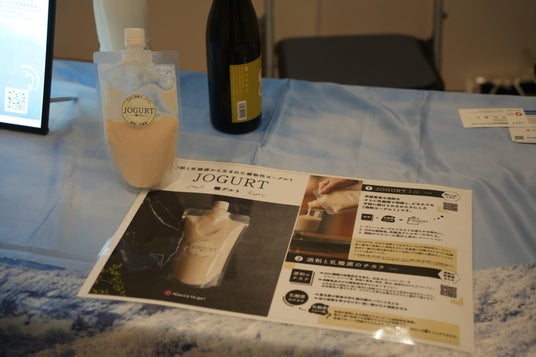 津南醸造の酒粕を用いてFARM8が開発した乳酸菌発酵酒粕ヨーグルト『JOGURT-醸グルト』の展示